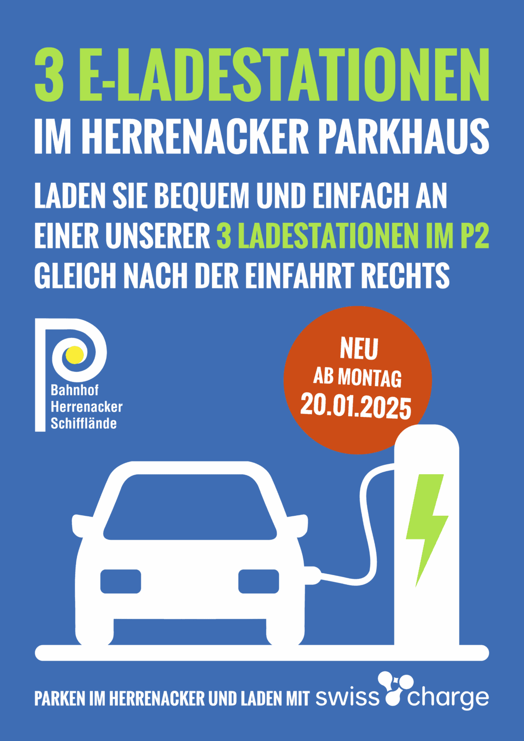 Lademöglichkeiten für Elektrofahrzeuge in den Parkhäusern Bahnhof und Herrenacker (nähere Infos siehe «Ladestationen» unter «Details»)